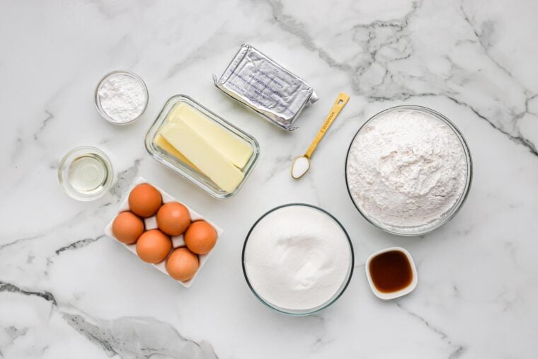 Ingredients you’ll need to make this cream cheese pound cake recipe